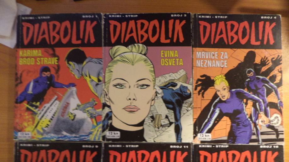 Prodajem stripove Diabolik, izdavač Slobodna Dalmacija. Brojevi 1, 3, 4, 9, 11, 15.