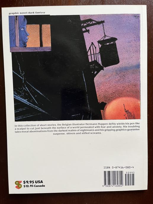 Hermanns style of narration and illustration is hyperrealistic. His characters are real-life, without any supernatural powers. The stories are gripping and moving and there is always a message to his work, although Hermann admits avoiding deep thoughts, in order to keep the story more interesting to read. It is little to say that he is one of the best living comic illustrators; he had several expos of his work. ABOMINATIONS are not at all representative of Hermanns opus. The book collects 4 short stories published in the 70es and 80es. Two of them are horror stories, showing an incredible amount of violence, which is typical for Hermann. Cage, on the other hand, shows the author at his very best. Massacre, the fourth story, was, by the authors admission inspired by the Sharon Tate murder. Never before or after did Hermann make short stories or horrors, so this book is very atypical for him. Still, ABOMINATIONS proves him as an extraordinary author. Despite millions of sold books, countless awards and his world-wide success, Hermann is virtually unknown in the United States since almost none of his books have been translated into English. ABOMINATIONS is a unique opportunity to come to know Hermann, a complete author, (script, illustration, color) who transforms comics into a sofisticated work of art.