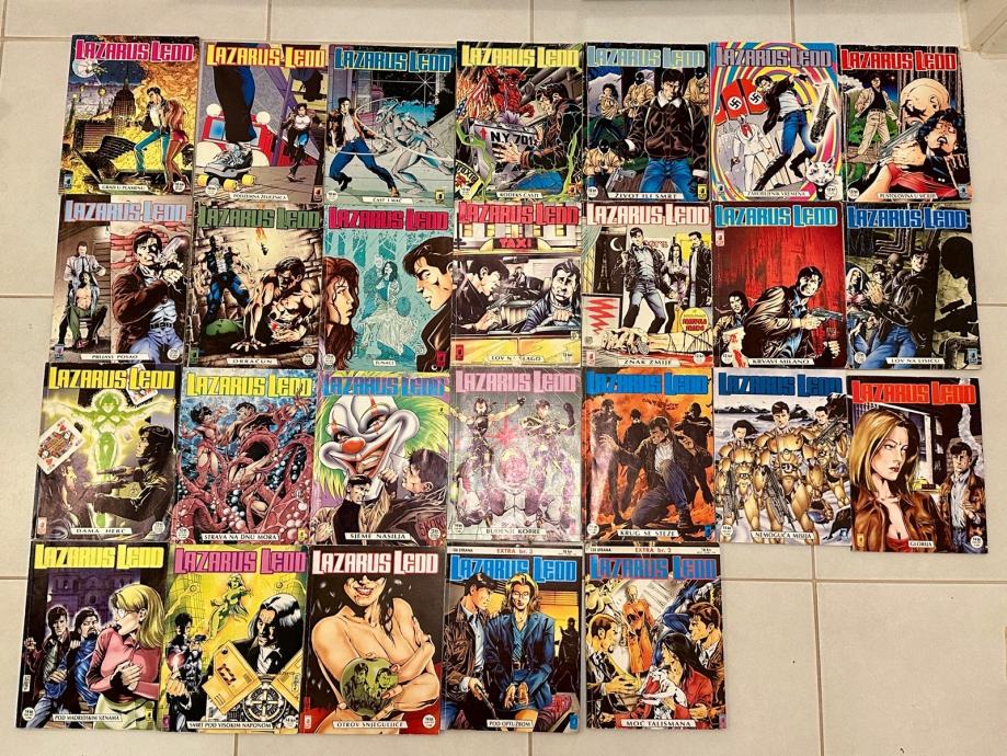 Prodajem očuvanu kolekciju stripova Lazarus Ledd – ukupno 26 stripova (24 redovnih brojeva + 2 specijalna broja Extra br. 2 i br. 3).