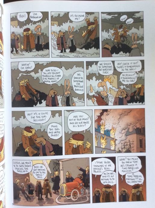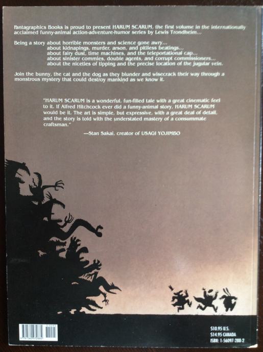 McConey, who looks like a well-dressed pink rabbit, is the voice of reason and sagacity among his friends, the closest of whom is a superstitious and puerile alley cat garbed like a retro hood. Their adventures in the series opener, Harum Scarum, revolve around magic powders that can turn the city's population (all of whom are animals) into self-destructing monsters. In The Hoodoodad, a cursed stone is at the crux of the action. The beautifully colored drawings, which show a terrific range of facial expressions and architectural details, along with the anthropomorphic characters, belie the fact that McConey's adventures really are best suited to mature readers. High school-aged boys, especially, will enjoy the frank machismo informing many of the exploits and the realistically foul language of Richie, the alley cat. The depictions are never truly gruesome or carnal; even the shootouts in Harum Scarum are no more graphic than Saturday-morning cartoons. Both books will be popular additions to collections serving teens.