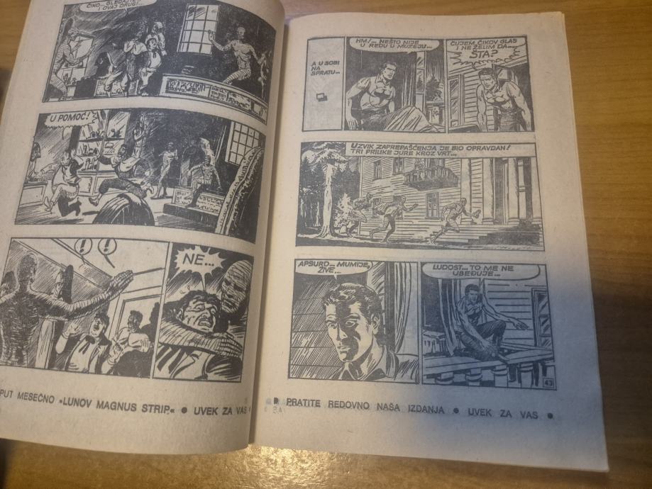 Izgleda ok na prvu ali ima 2 zacepljenja na naslovnoj kod bijelog kruga,čak i malo selotejpa,napuknuća duž hrbata dolje ali i dalje čvrst i kompaktan,iznutra očuvan