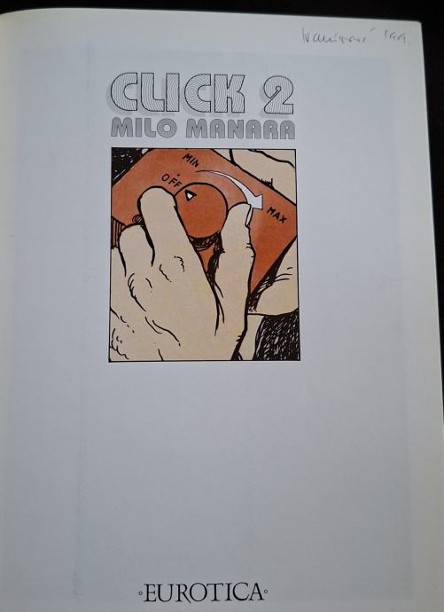 Prodajem strip Mila Manara CLICK 2 na engleskom jeziku. Zapis na unutarnjoj naslovnoj stranici vidljiv na fotografiji.