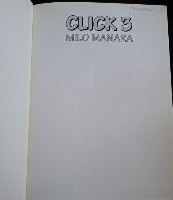 Prodajem strip Mila Manara CLICK 3 na engleskom jeziku. Zapis na unutarnjoj naslovnoj stranici vidljiv na fotografiji.