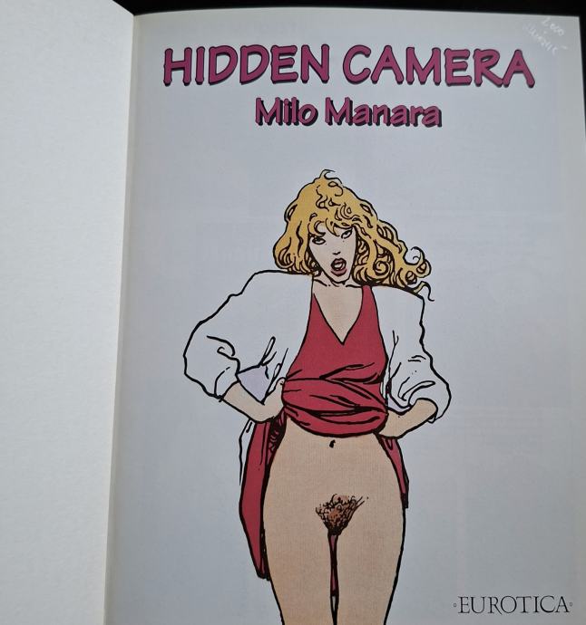 Prodajem strip Mila Manara HIDDEN CAMERA na engleskom jeziku. Zapis srebrnim flomasterom na unutarnjoj naslovnoj stranici vidljiv na fotografiji.