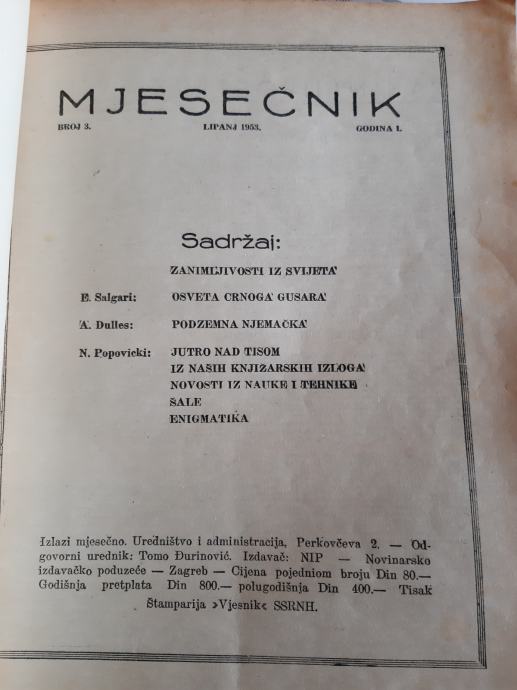 Izdanje NIP Zagreb od 1.06.1953. godine