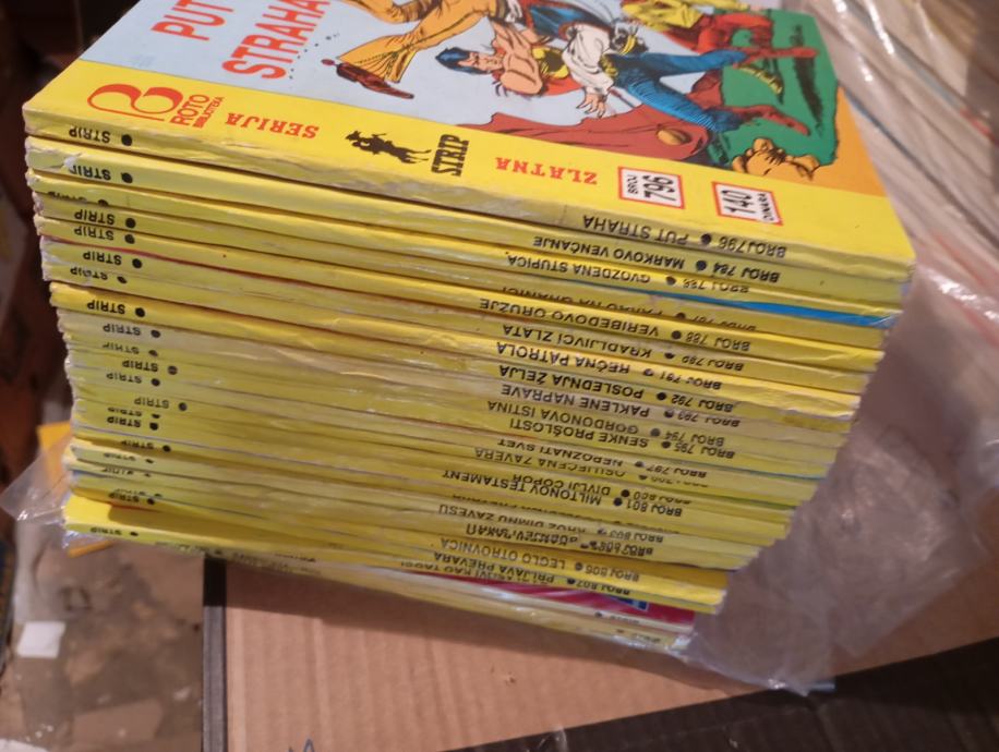 Zlatna serija 1103 i lms 997 komada znači sve što je izašlo od 1968 do 1992 od dnevnika ,ukupno 2100 komada u vrlo dobrom i odličnom stanju.Samo je malo brojeva potrebno popraviti stanje npr, lms 1,4,7,636,997 , i zs 13,43,45,80,87,88,104,1103 ;od onih najvrednijih.Cijena je veoma povoljna 22eura po stripu ali za cijelu kolekciju u komadu.