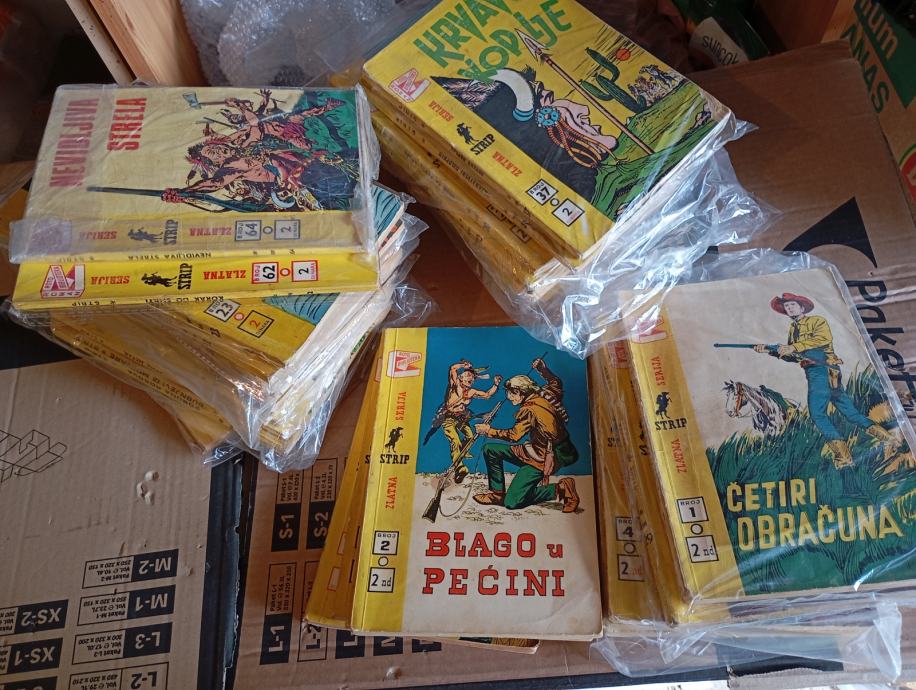 Cijena je po dogovoru,ima ih od par eura a i skupljih posebno kartonaca,moguć dobar popust na veći količinu.Isto tako imam i drugih raznih izdanja npr,Fordovi,ludensi itd. Lokacija Sisak naselje,poželjno je sve pogledati radi sigurnosti šta se kupuje.Na kraju je moguć dogovor oko kupnje i prevoza stripova.