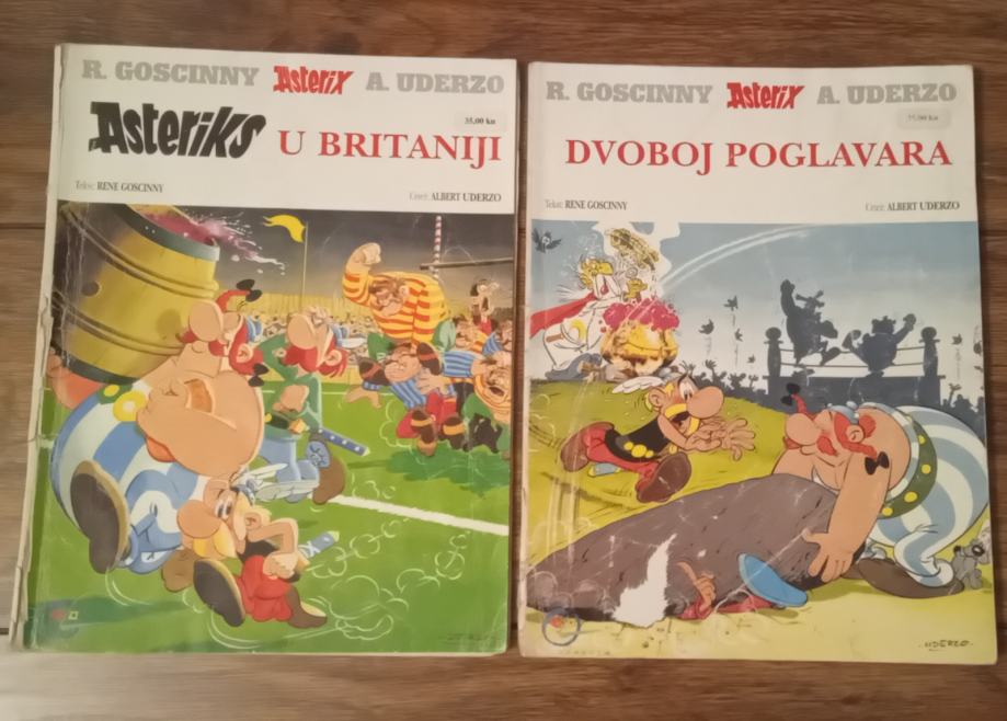 Strip očuvan, u dobrom stanju. Napomena: album Asteriks u Britaniji iz knjižnice, službeni otpis. Oba albuma zajedno u kompletu za 24,9€.
