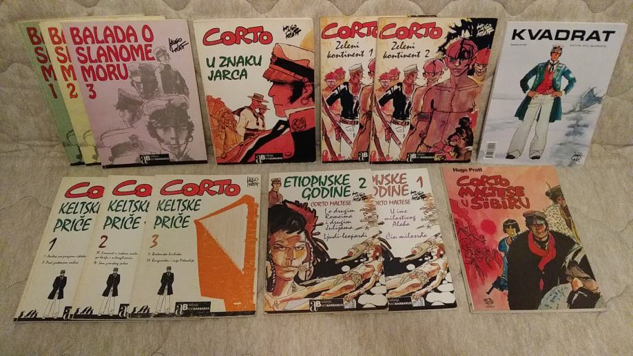 Prodajem strip komplet Corto Maltese; kompletan strip izdanje AntiBarbarus br.1 do 11 + Corto Maltese u Sibiru izdanje Ceses + časopis Kvadrat posvećen autoru Ugu Eugeniu Pratu aka Hugo Pratt dvobroj.31/32 sve na hrvatskom jeziku, rasprodano izdanje kojeg više nema u prodaji;