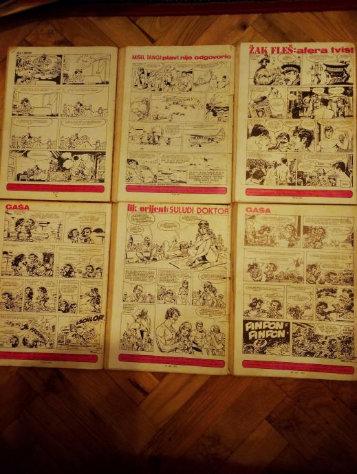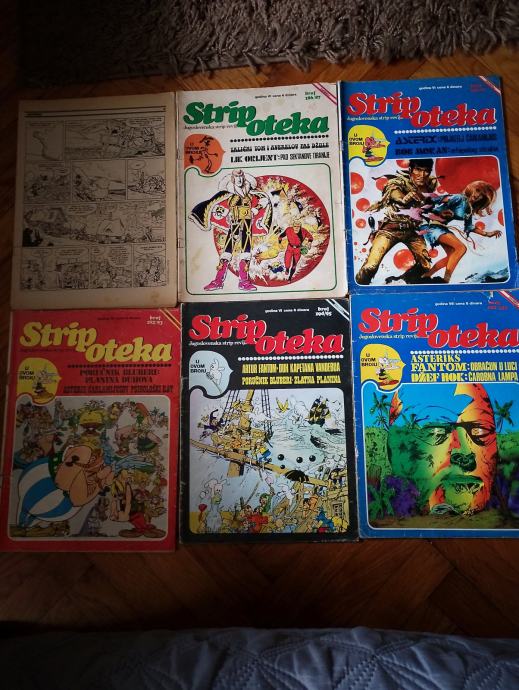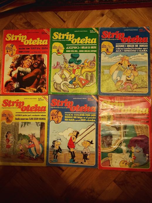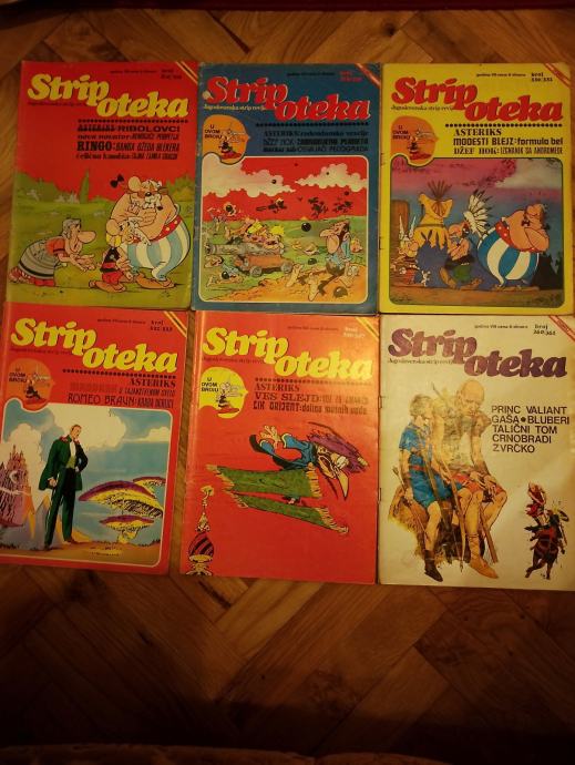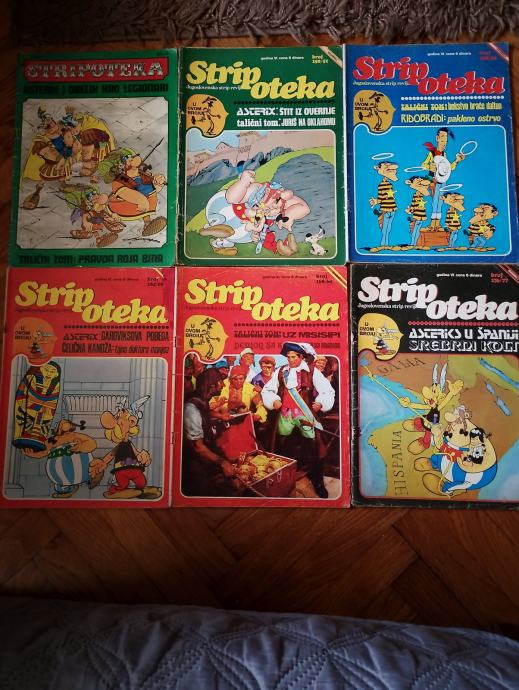 lot traženijih stripoteka, vrlo starih i novijih, starije br. : 146 (5 €) ; 150/151 = 5 € ; 158/159 = 5 € ; 164/65 (4 €) ; 168/69 (5 €) ; 176/77 = 6 €, uz nju dobijete i gratis dvobroj 178/79 s čime imate kompletnog asteriksa (u Španiji), jer je ovaj drugi bez naslovne stranice (slika), ali je nastavak same radnje (2. dio) ; 186 /87 (5 €) ; 194/95 (5 €) ; 190/91 (5 €) ; 192/93 (4 €) i 342/43 (4 €) ostali dvobroji 4 €/kom. - od novih ostali još brojevi 1004,1010, (tisuću : 16,37,40,41,42,44,45,49,50,51,54,62,66,81,82,88,97),1129,1139,1141,1142 i 1133, stanje +5/glanc, 4 eurića komad više komada (više od 2) ; inače 5 €/kom.