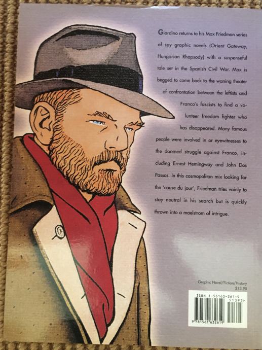 A suspenseful tale set in the Spanish Civil War. Max is begged to come back to the waning theater of confrontation between the leftists and Franco’s fascists to find a volunteer freedom fighter who has disappeared. Many famous people were involved in or eyewitnesses to the doomed struggle against Franco, including Ernest Hemingway and John Dos Passos. In this cosmopolitan mix looking for the ‘cause du jour’, Friedman tries vainly to stay neutral in his search but is quickly thrown into a maelstrom of intrigue.