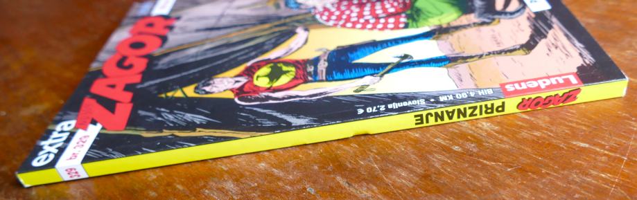 Strip nečitan. Ima sitne utore na zadnjoj korici na vrhu i pri dnu.