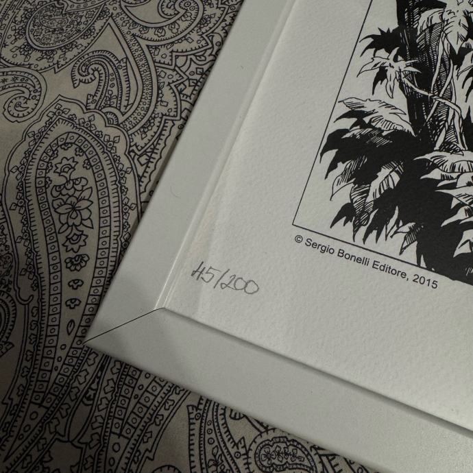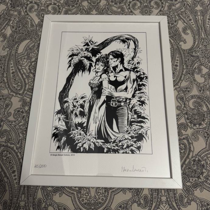 Slika sa izložbe 2015. koju je potpisao i numerirao ilustrator Mauro Laurenti. Slika je u A3 formatu i dolazi u bijelom IKEA okviru.