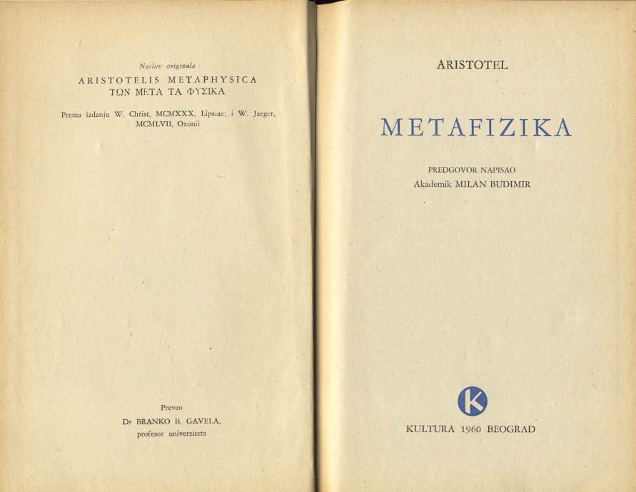 Kao jedno od temelja opće ljudske duhovnosti, ovo se Aristotelovo djelo svojom "prvotnom filozofijom" obično određuje kao istraživanje počela te uzroka bića kao bića te filozofska disciplina o nepokretnom pokretalu (ili pokretaču) odnosno o božanstvu, čime je matafizika (koju Aristotel u ovom djelu naziva mudrost) i opći nauk o bitku.