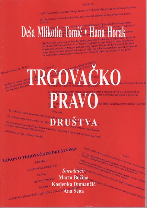 Deša Mlikotin-Tomić, Hana Horak: Trgovačko pravo Društva