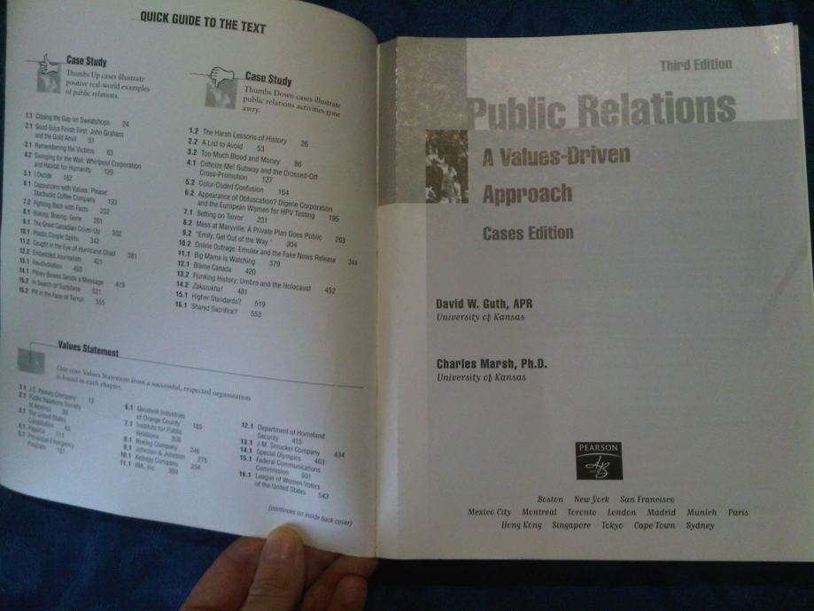 Nova knjiga na engleskom , stručna literatura . Guth , Marsh : Public Relations - a Values-Driven Approach , 2007. , meki uvez . Novo , nekorišteno.