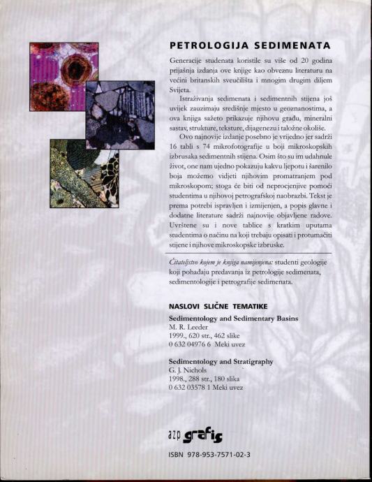 Riječ je o prijevodu trećeg izdanja udžbenika Sedimentary Petrology kojeg je napisao Maurice Tucker. Ako se na studiju ili poslu susrećete sa sedimentnim stijenama, ovo je knjiga za vas.
