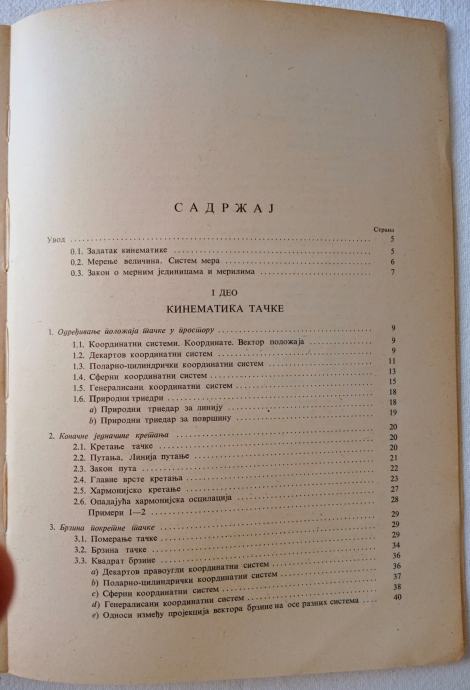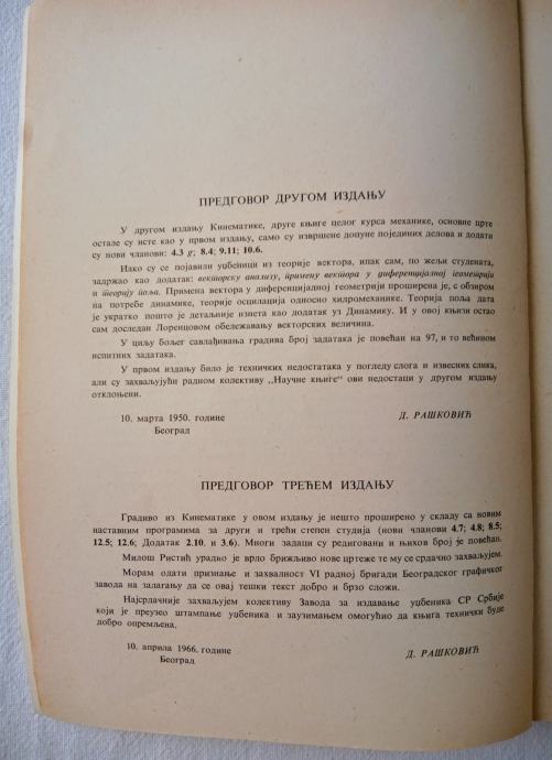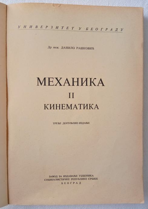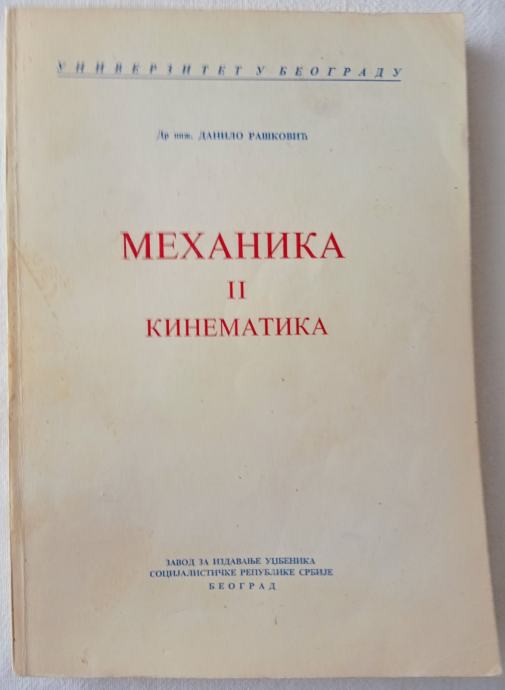 1. MEHANIKA II - Kinematika, ćirilica (Dr D. Rašković), Zavod za izdavanje udžbenika Beograd, 1967, (3. izdanje), str. 348, meki uvez, 12,50 € / 94,18 kn