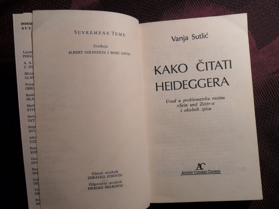 Vanja Sutlić svojim je mišljenjem, djelom i neponovljivom osobnošću ostavio dubok trag u suvremenoj hrvatskoj filozofiji i kulturi uopće. Kao jedan od najznačajnijih filozofa XX. stoljeća na južnoslavenskim prostorima, bio je kultni profesor koji je odlučno utjecao na cijele generacije intelektualaca. Sutlićeva knjiga Kako čitati Heideggera zasigurno je najbolji uradak u nas koji se bavi temeljnim pitanjima Heideggerova mišljenja u kontekstu cjeline njegova misaona puta, s jedne strane, i mišljenja metafizičke tradicije, s druge strane.