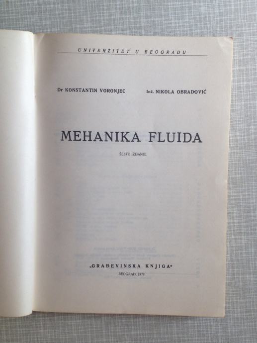 PRODAJEM KNJIGU: „MEHANIKA FLUIDA„