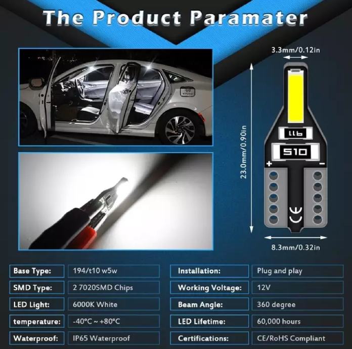 Prodaje se 10 kom T10 W5W LED zaruljica. Testirano na vise modela automobila nema problema sve radi kao iz tvornice.