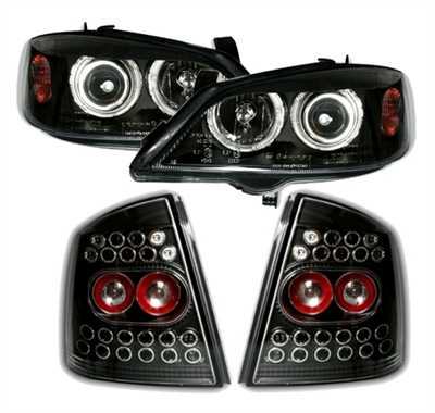 Angel Eyes + LED stražnja svjetla, pogodni za Opel Astra G. Finish: crna i jasna stakla.