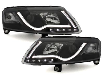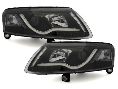 Prednja xenon LED dnevna svjetla (crna) za Audi A6 4F, godina 04-07. Žarulje: D2S / H1 (H1 uključene).