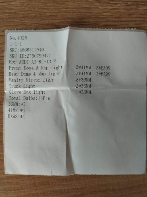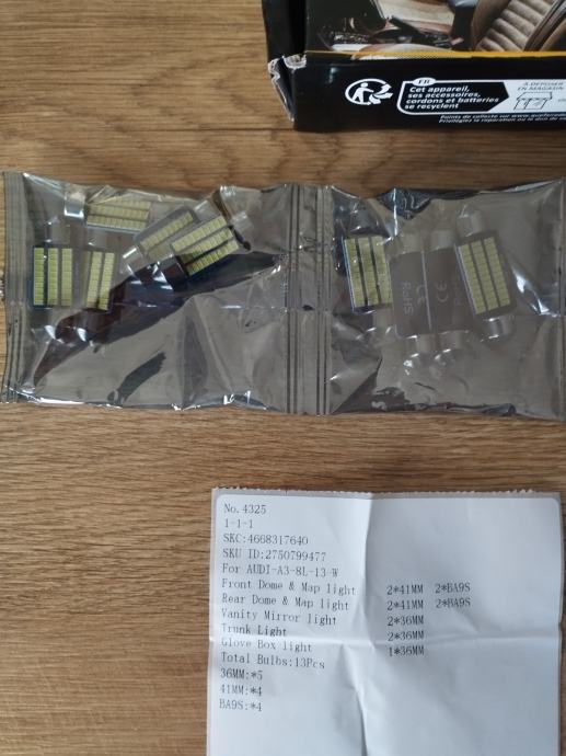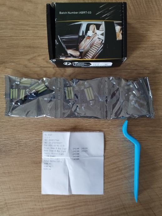 Prodajem unutrašnji set led svjetla za Audi A3 8l.Set se sastoji od 13 žarulja i pribor za skidanje.Vjerovatno može i za druge aute.
