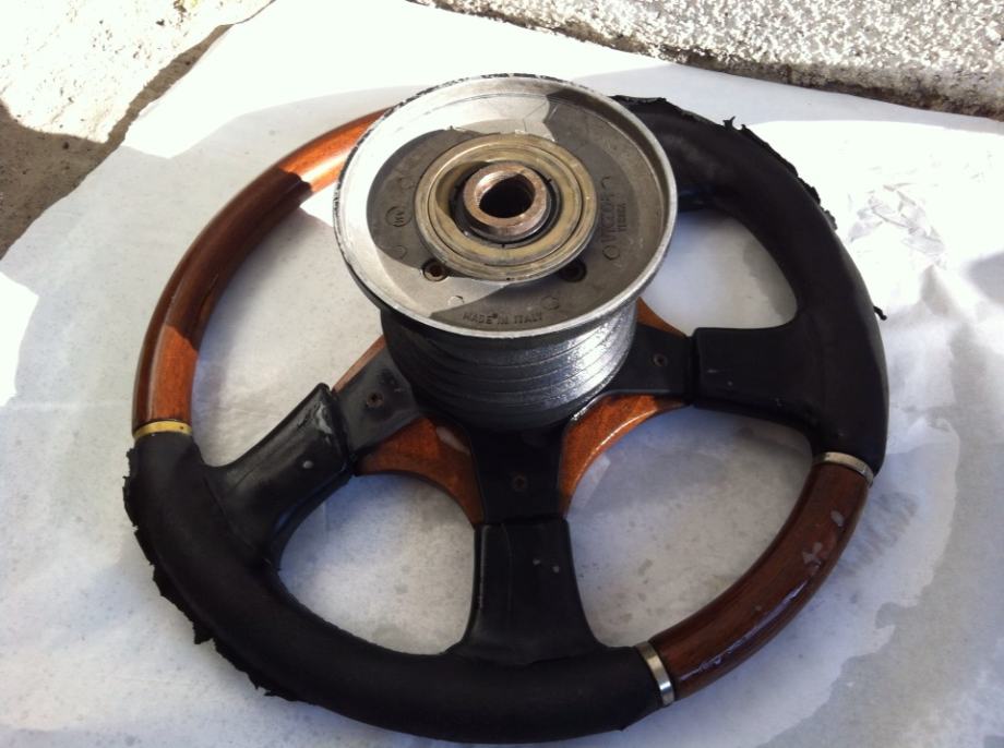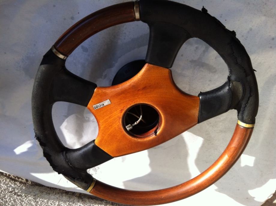 Volan drveni - koža. Ocufan, potrebno urediti. 200 kn..