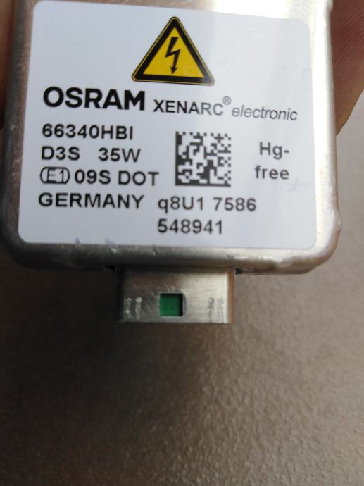 ekološki materijali ugrađeni u žarulju , preporuka samo original Osram stavite D3S ,nikakve zamjenske ..glavna oznaka, zeleni štapić i utor za kabel te ispod poklopca žig njemački itd...