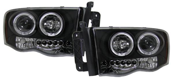 Prednja svjetla crna Angel Eyes s led pozicijiom za Dodge Ram PickUp, god. 02-06. H1 / H1.