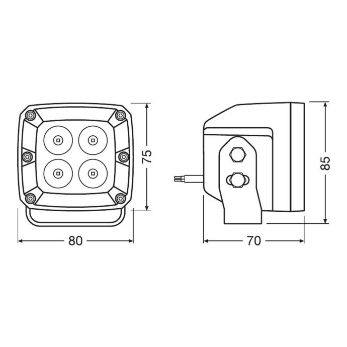 With its 4 powerful, high-performance long-life LEDs, the OSRAM LEDriving Cube VX80-SP has a range of up to 114 meters and thus offers the operator impressive visibility at the workplace and in terrain.