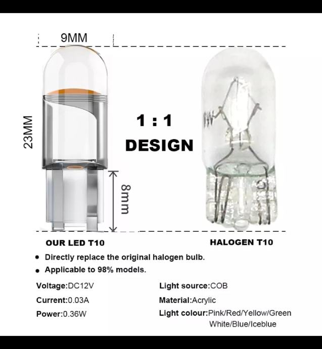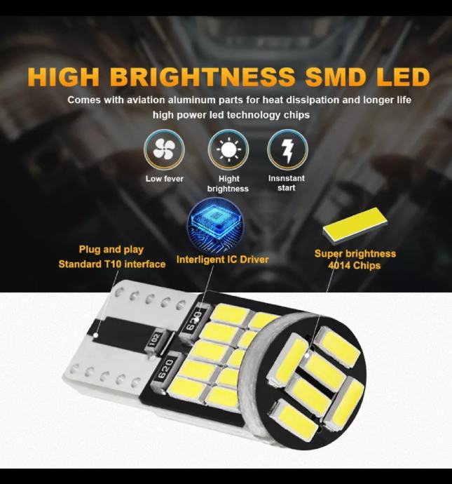 LED, CANBUS/ERROR FREE, vrhunske kvalitete, sa ugrađenim čipovima zadnje generacije, dugotrajne/30000-50000h radnih sati procijenjeni vijek trajanja, pouzdane, termorezistentne, 6000/7000 Kelvina, 3-10 wata, extra snažno, snježno bijelo svjetlo,(u ponudi su i modeli W5W-T10 dostupni u Ice blue i red coloru), 400 -1200 lumena, a neki od modela zaštićeni su termorezistentnom ili silikonskom masom ili akrilnim staklom sa protektivnim certifikatom IP67!