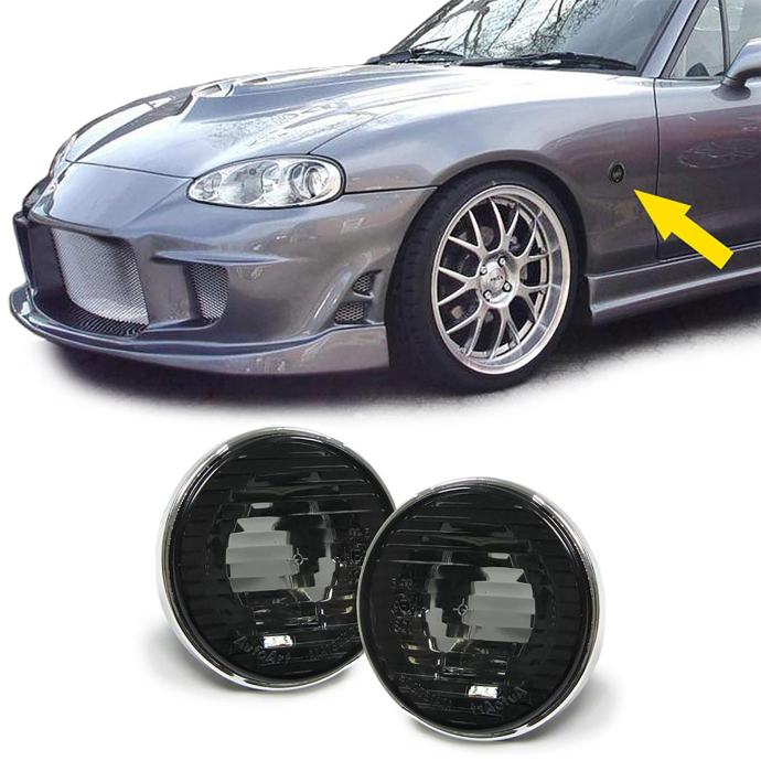 Mazda MX5 NA NB NBFL 90-05 bočni žmigavci crni s krom okvirom set NOVO