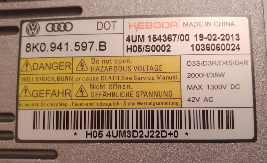 Novi orginal XENON balast KEBODA 8K0.941.597.B , D3S D3R D4S Rijeka
