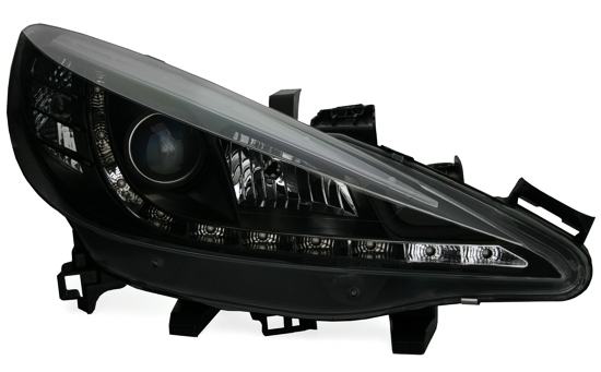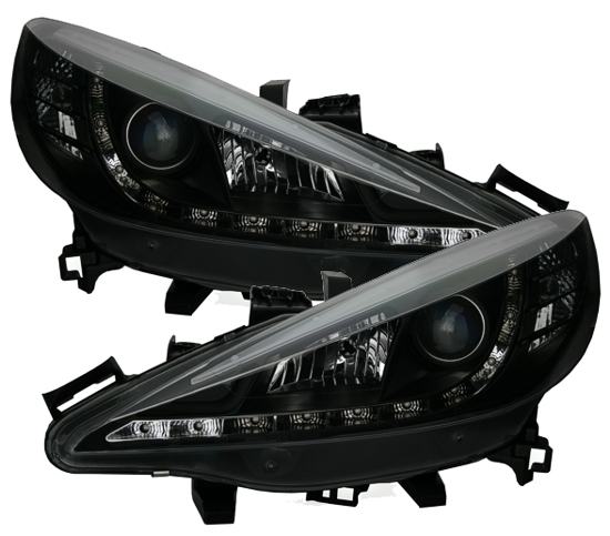 Led svjetla set, pogodan za Peugeot 207 god Mod 03/06-02/12. Prozirno staklo crno, s LED dnevnim svjetlima. Pogodna žarulja: H1/H7.