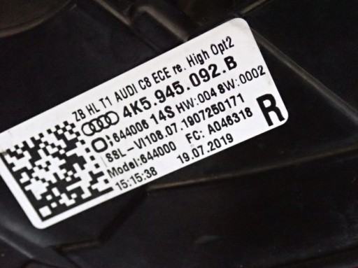 AUDI A6 C8 LED LIMUZINA / SEDAN LAMPA FAR DESNA STRANA ZADNJA ZADNJI