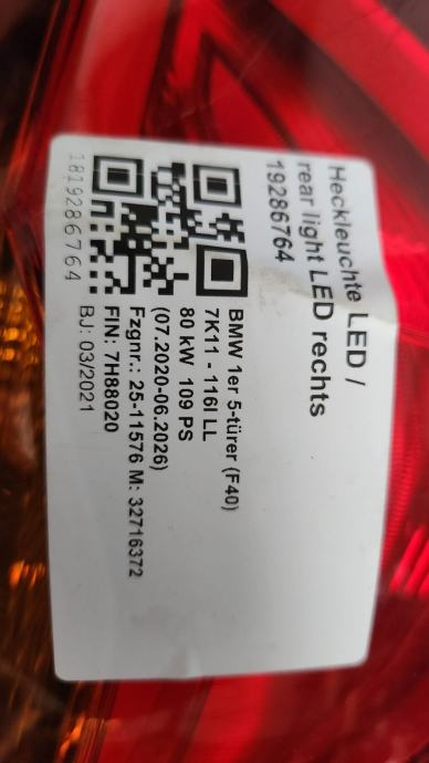 BMW 1 F40 - Zadnja desna lampa 7450642