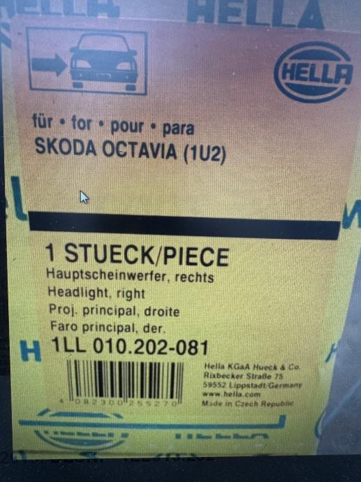 FAR ŠKODA OCTAVIA 96-2010. GOD. DESNI 1LL010.202-081