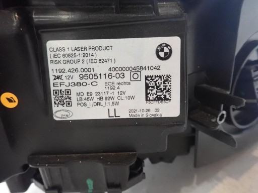 LAMPA FAR PREDNJI DESNI BMW 4 G22 G23 G26 G80 LASER 2020- 9505116-03