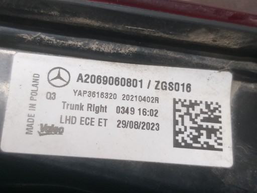 LAMPA FAR ZADNJI DESNI MERCEDES C KLASA W206 KARAVAN LED A2069060801
