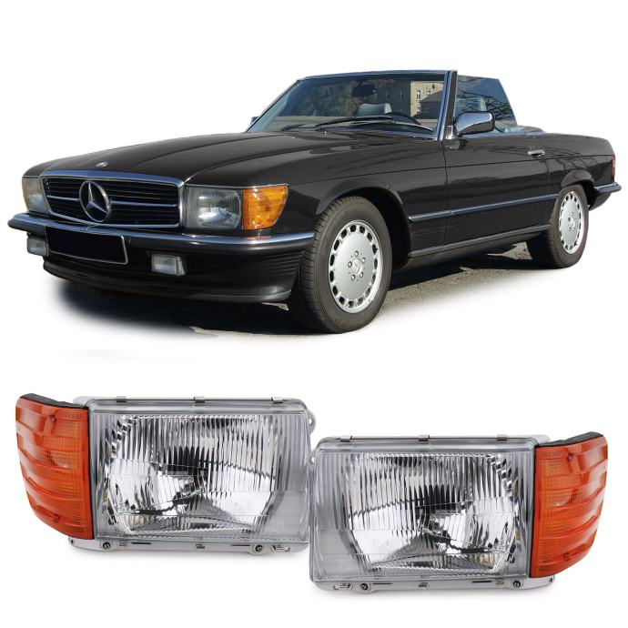 Tehnički detalji prednjih svjetala s LWR desno + lijevo kompletan set za Mercedes SL R107 SLC C107 37734 / pogodno za