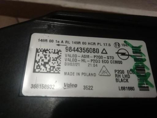 OPEL MOKKA II 2 B FULL LED 9844356080 LAMPA FAR PREDNJA STRANA DESNA