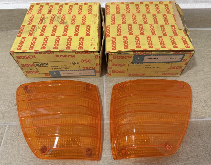 Prodajem novi, lijevi i desni poklopac žmigavca za Mercedes W116. Mercedes serijski brojevi artikla su 001 826 83 90 i 001 826 84 90. Bosch brojevi artikala su 1 305 620 145 i 1 305 620 146.