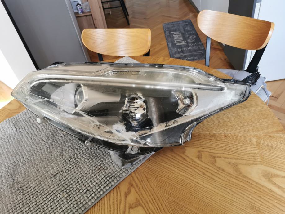 Peugeot 208 prednji far 2015 leća puknuto staklo može kao zamjena, jedna kopća pukla, plastika fara na Temu 15 eur