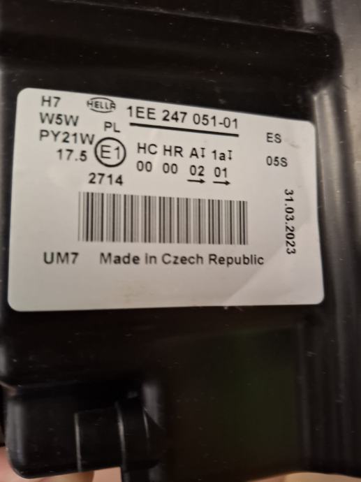 NOVO! PREDNJI LIJEVI FAR VW POLO IV;V;VIVO;VAN HELLA 1EE 247 051-01