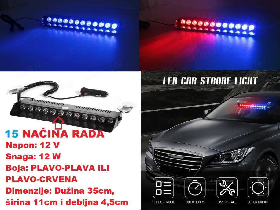 ROTIRKA Stroboskom LED PLAVO-PLAVA ILI PLAVO-CRVENA svijetlo 12 LEDICA