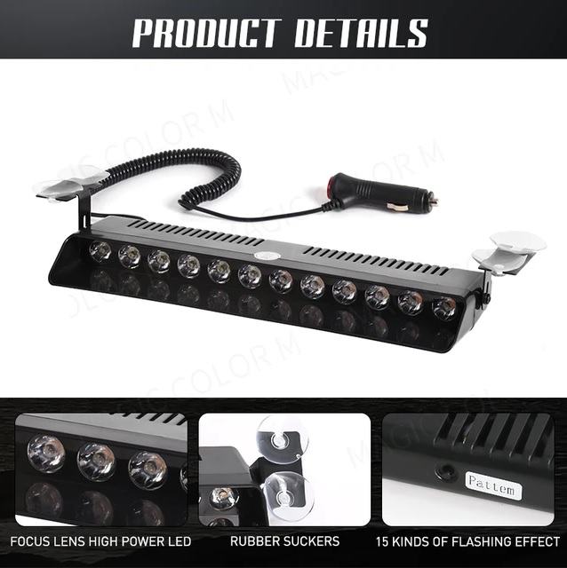 12 LED dioda automobilskih stroboskopskih bljeskalica Signalni signal upozorenja Policija Vatrogasac Vjetrobransko staklo prikolice Pokazivači vozila Vodootporan