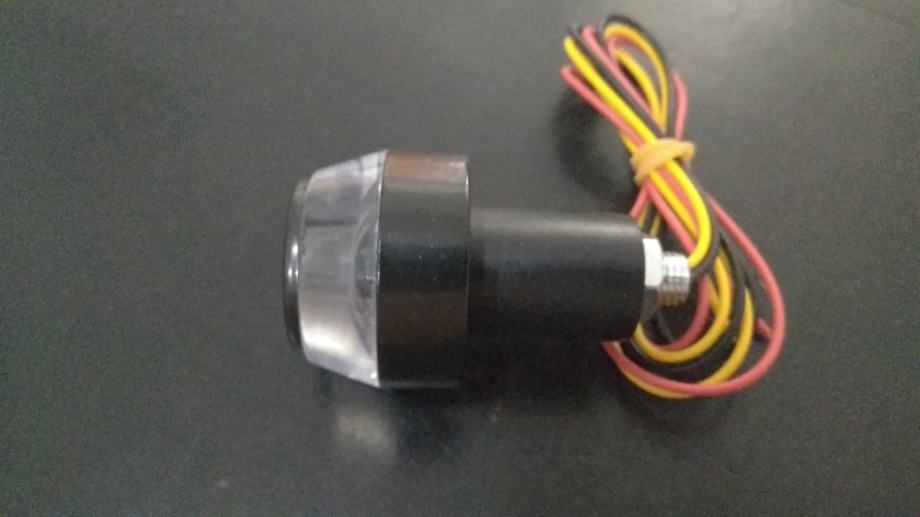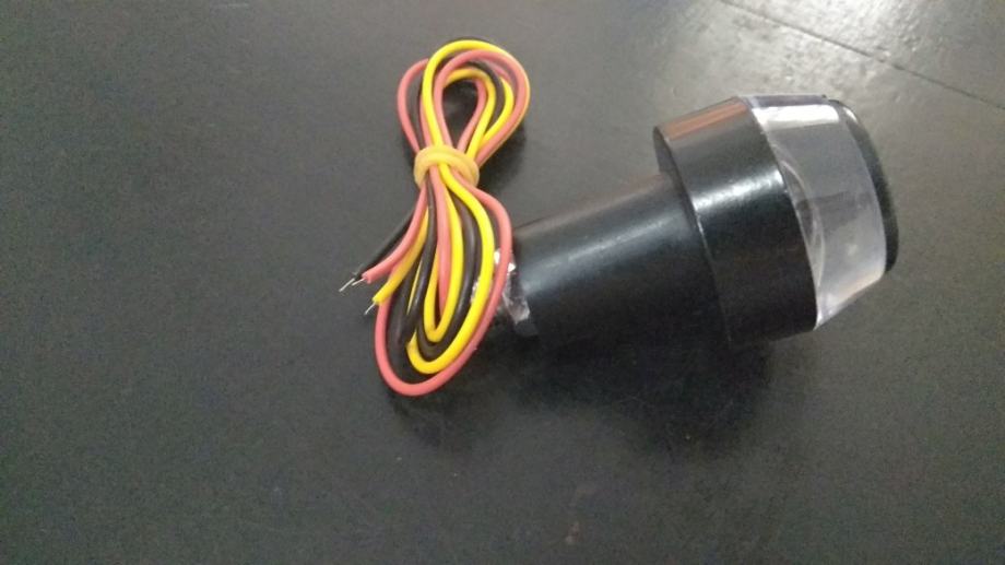 Dok su svijetla upaljena svijetli bijelo svijetlo,kad se upali zmigavac blica zuto svijetlo.