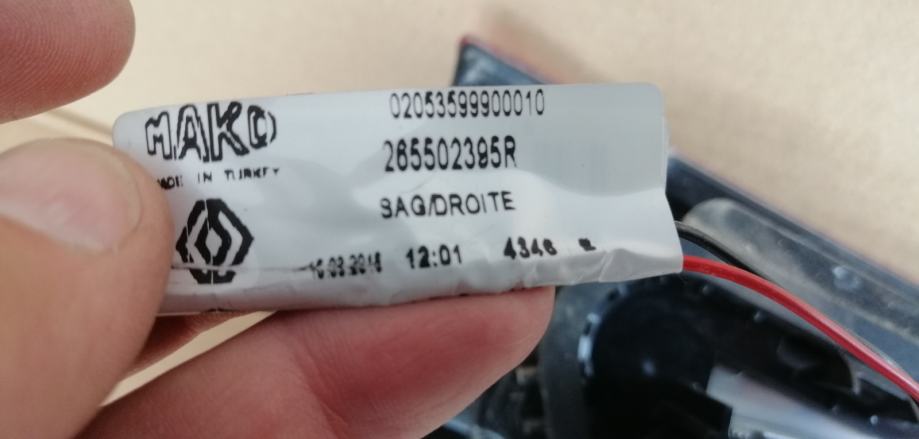 -dijelovi su originalni Renault sa kat.brojem 265502395R - Desno, na vratima gepeka i 265559118R - Lijevo, na vratima gepeka